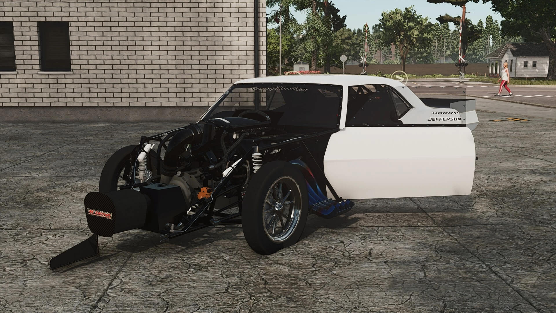 Wheelie-Bars, Fallschirm und ein spartanisch ausgestatteter Innenraum machen das Ganze zu einem echten Business-Fahrzeug.