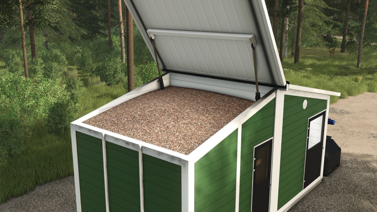 Der Tank kann mit einer Schaufel befüllt werden, während das linke Dach geöffnet ist. Um das Dach zu öffnen, drücken Sie die linke Maustaste, während Sie neben dem Schalter vorne links an der Außenseite stehen.