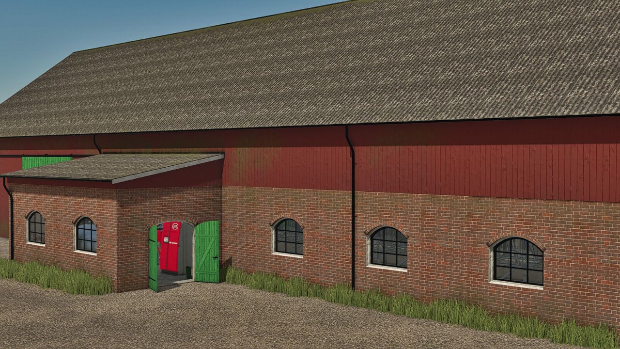 Das Gebäude ist in zwei Ausführungen erhältlich: mit und ohne Weide. Darüber hinaus gibt es zahlreiche Konfigurationsmöglichkeiten, beispielsweise drei verschiedene Arten von Außenwänden: Stein, Ziegel und Putz. Die Türen sind wahlweise grün oder schwarz, und auch die Farbe der oberen Wände kann individuell gewählt werden. Zudem lässt sich die Marke des Melkroboters auswählen.