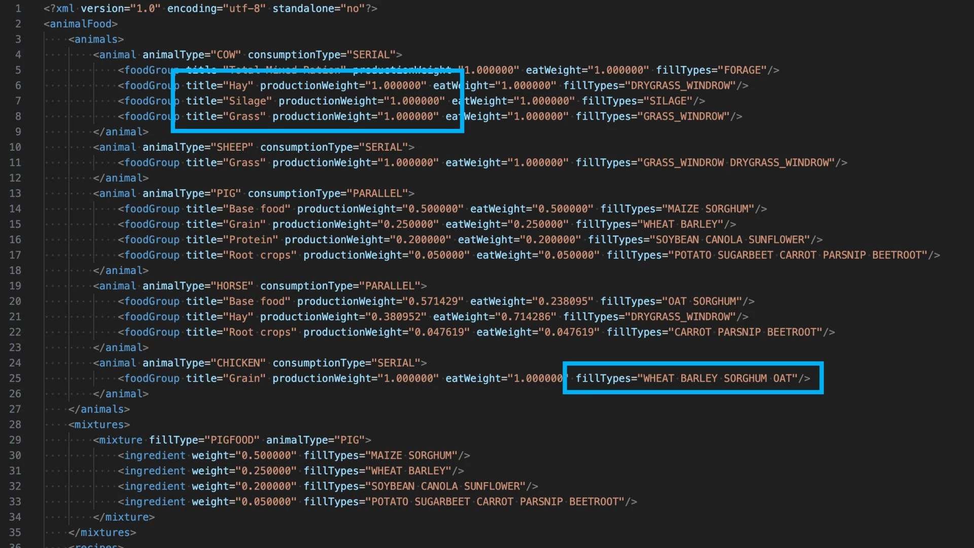 – Schema-validierte Konfiguration: Nutzt das im Spiel integrierte Schema „AnimalFoodSystem“ für eine robuste, fehlergeprüfte XML-Verarbeitung.