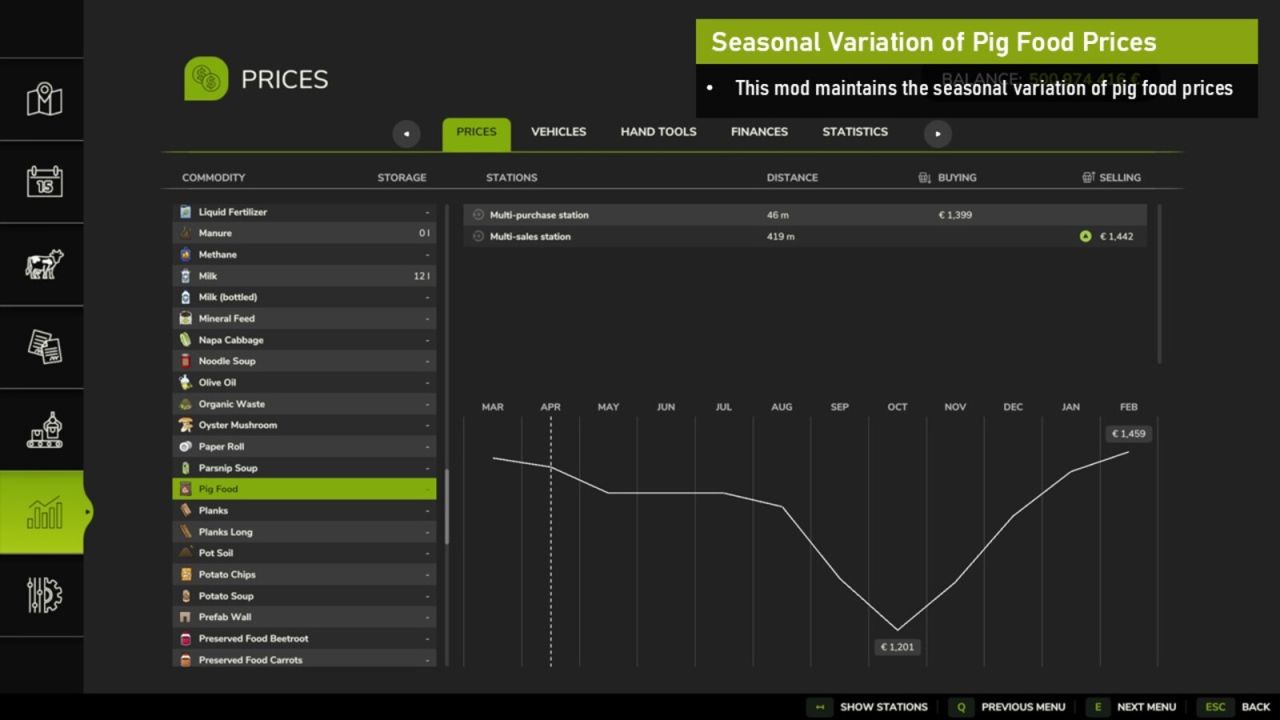 HINWEIS: Dieser Patch wird empfohlen, wenn Sie „BigBags Everywhere“ zusammen mit „Seasonal Prices“ verwenden. Diese Mod funktioniert jedoch auch eigenständig und ermöglicht es Ihnen, Schweinefutter als Big Bags zu erzeugen, selbst ohne „BigBags Everywhere“.