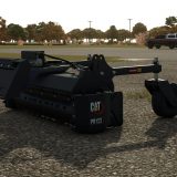 Dies ist ein Anbaugerät für Kompaktlader, das jetzt mit dem Cat-Logo, dem Cat PR123-Logo und dem Battlefield Rental-Logo versehen ist.