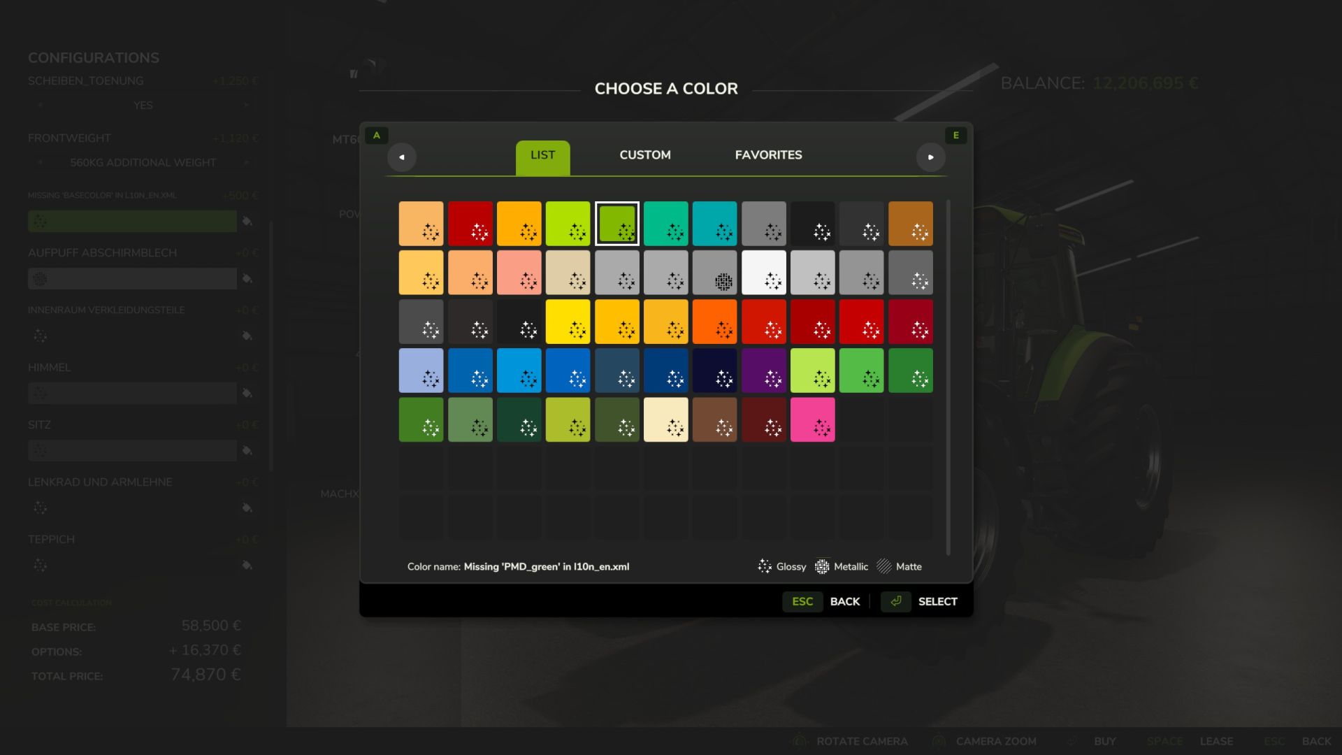 – Farbauswahl für die Fahrzeugkarosserie