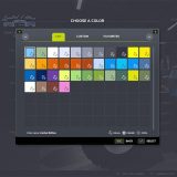 Farbauswahl für Hauptfarbe, Designfarbe, Rahmen, Innenausstattung, Innenausstattung 2, Armlehne/Gurt, Sitz, Frontladerkonsole, Motorgrill, Schriftzug und Felgenfarbe, und