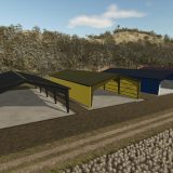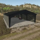 Großer Metallpavillon mit Wänden und Bunkersilo
