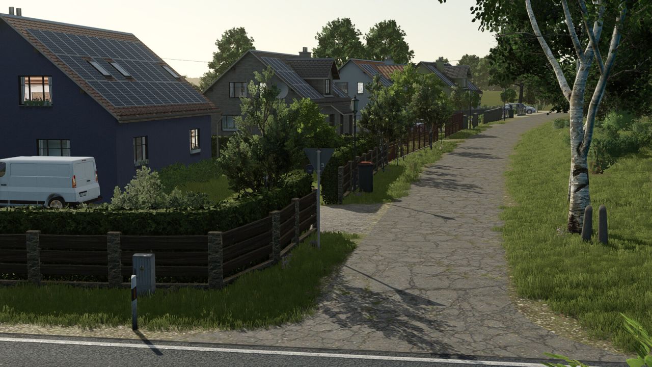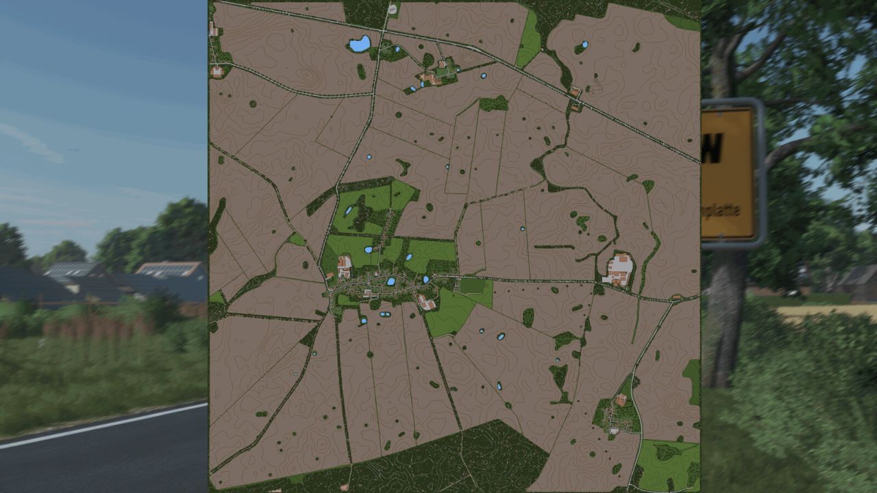 – Teilweise Wiederaufforstung mit realistischen Straßenverläufen, Feldern und Verkehrsschildern