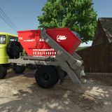 Sie können weitere Farben ändern. Das Modell umfasst den Containeraufbau, den Container selbst, den Kipper und den Silokipper. Auch Trauben können im Container transportiert werden. Die Räder werden nass und schmutzig. Es gab ein Problem mit der Stützkollision; ich habe es behoben, sodass die Stütze verschwindet und sich absenkt.