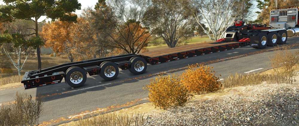 Der Anhänger verfügt über eine Seilwinde am Hals und eine weitere am Heck der Ladefläche. Die Arbeitsscheinwerfer werden über die IC-Funktion gesteuert. Der Achsendruck kann angepasst werden. Zusätzlich befindet sich auf der Fahrerseite des Anhängers eine Arretierungs-IC, die die Ladefläche fixiert. Dies ist hilfreich, wenn Probleme beim Aufziehen des Anhängers auftreten oder wenn der Anhänger sicher geparkt werden soll.