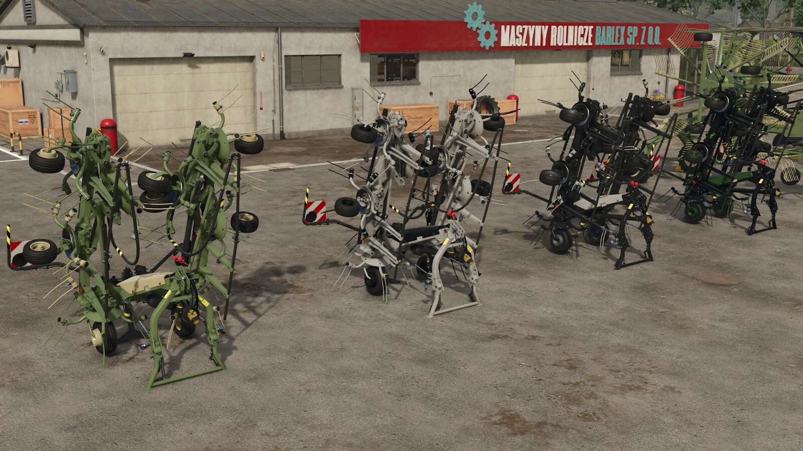Zwei vielseitige Maschinen zum effizienten Wenden und Harken von Gras.