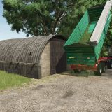 Der vordere Bereich dient zum Entladen, die gelagerten Erntegüter können von der Rückseite des Silos entnommen werden.