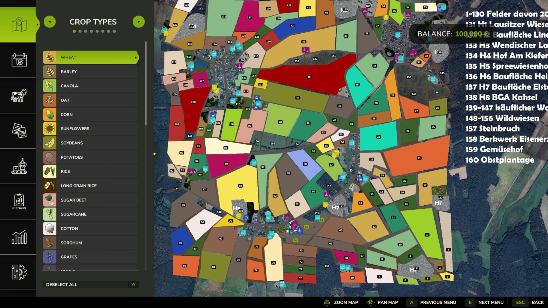 – Im Zentrum der Karte befindet sich ein Startbauernhof mit Fahrzeugen und 3 Feldern.