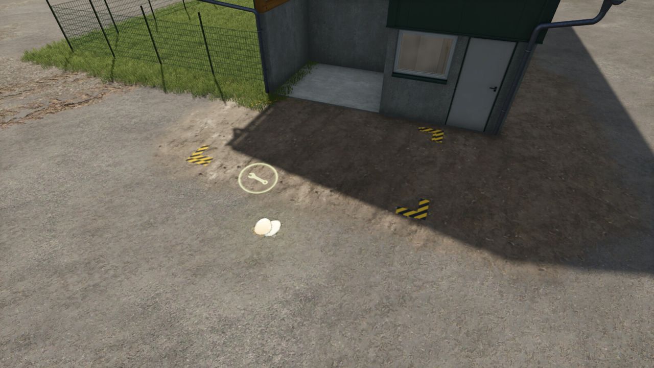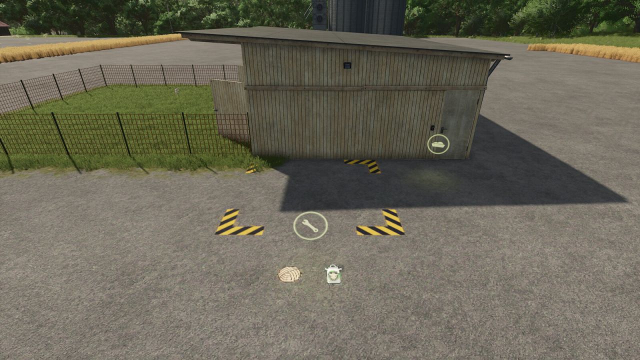 Platziere die Palette über dem Paletten-Spawnpunkt am Tiergehege. Möglicherweise muss beim Platzieren der Freie Modus aktiviert werden. Bei der unsichtbaren Version entspricht die Ladefläche der Palette der Größe der extra großen Warnstreifen.