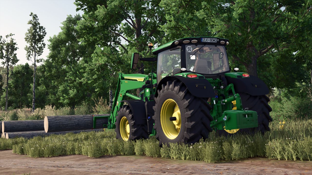 Dank seiner zwei robusten Gurte lassen sich Baumstämme leicht greifen und transportieren.