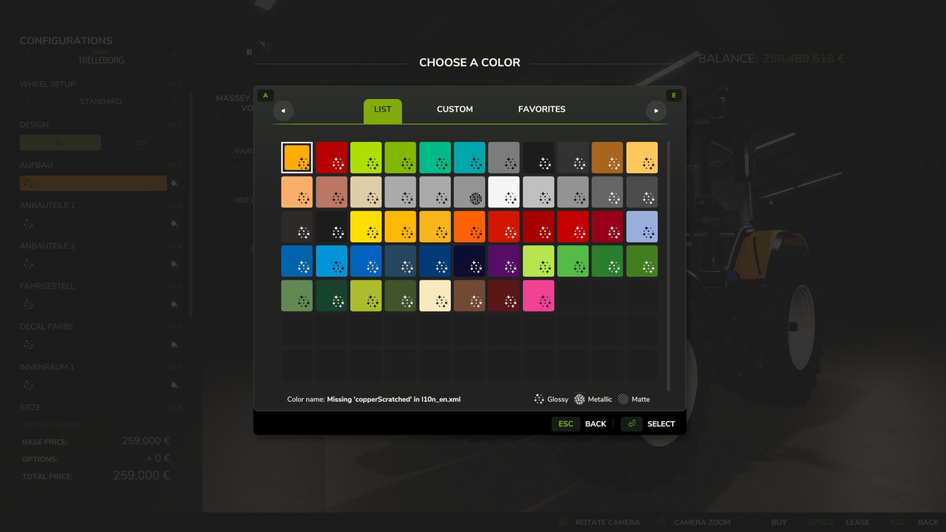 – Wahl der Chassisfarbe