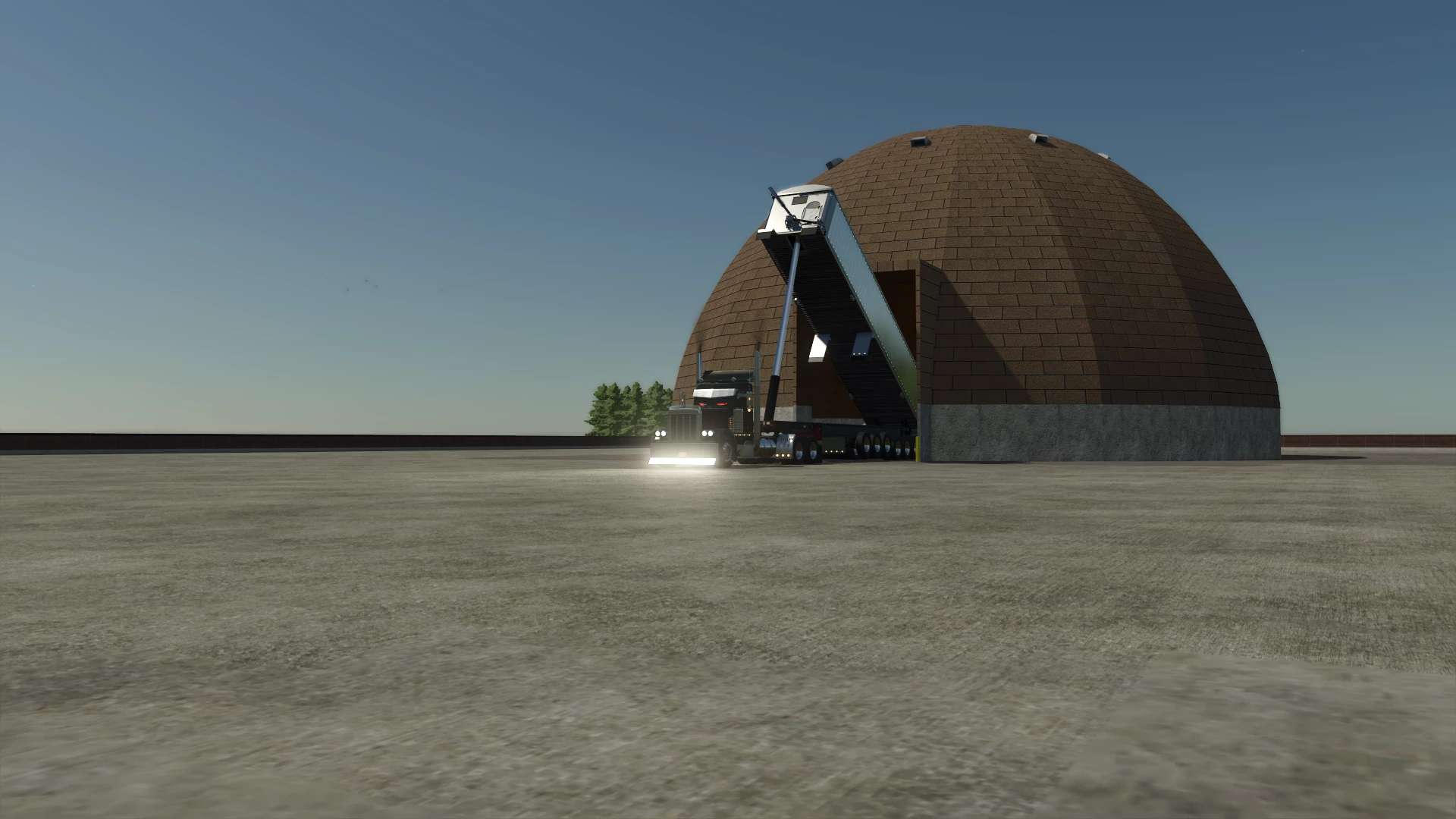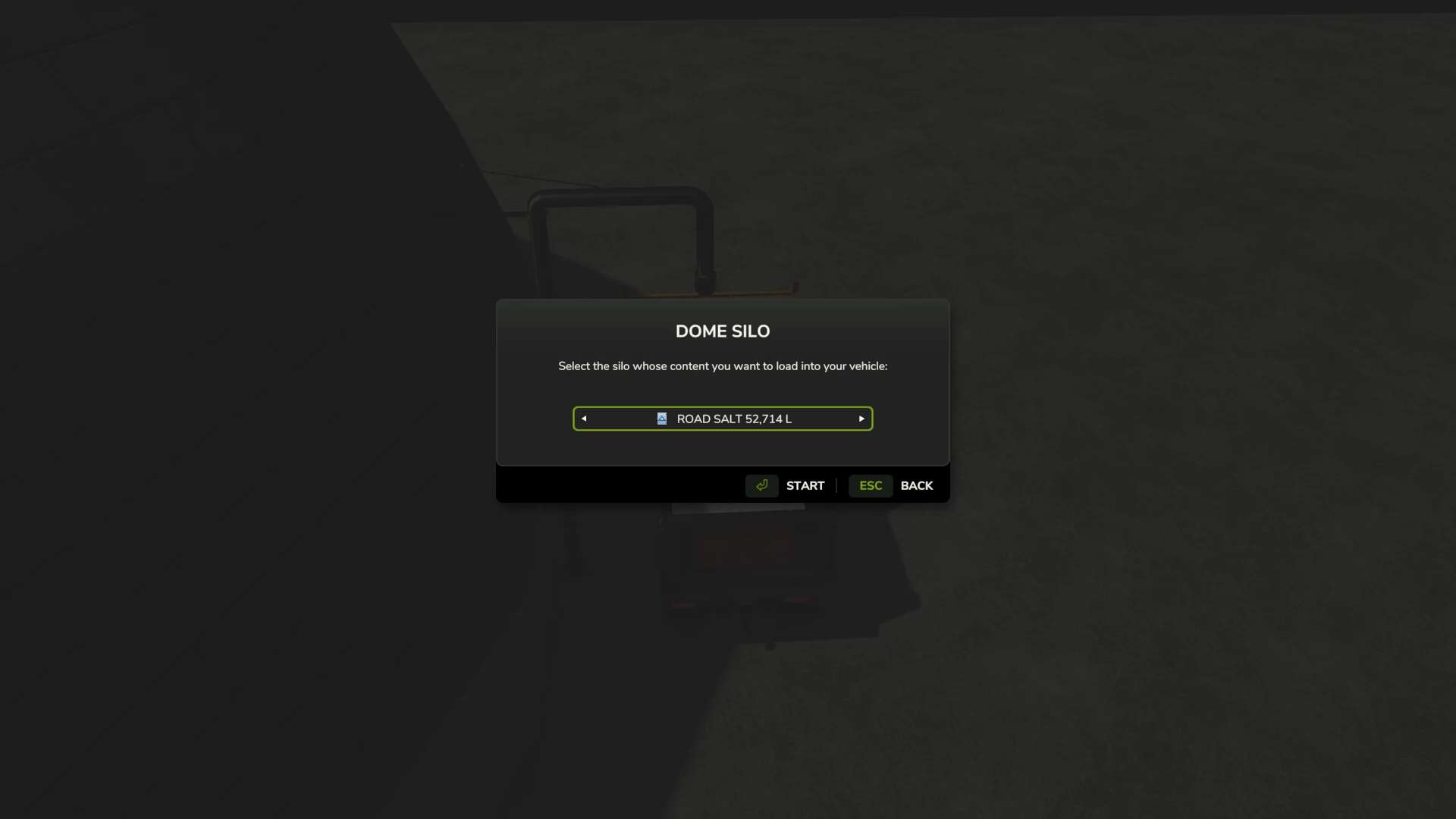 Hier habe ich einen Odot-Salzdom, der 500.000 Liter Streusalz fasst. Das reale Modell fasst bis zu 16.000 Tonnen bzw. 16 Millionen Liter im Spiel, aber das würde ewig dauern, deshalb habe ich das Volumen für das Salzlager mit platzierbarem Füllsilo auf 500.000 Liter eingestellt.