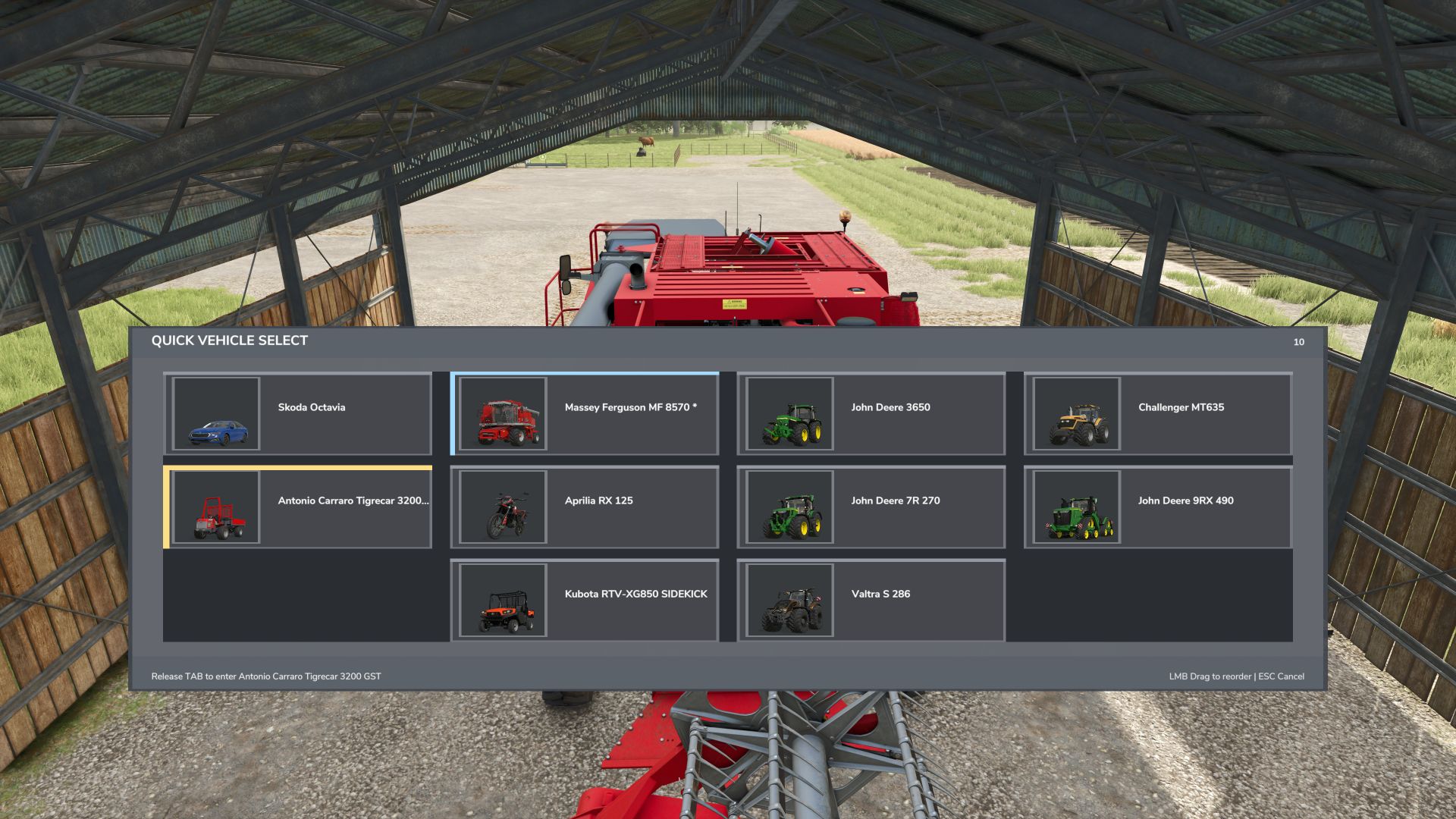 Halten Sie die TAB-Taste gedrückt, um die Fahrzeugauswahl zu öffnen.
