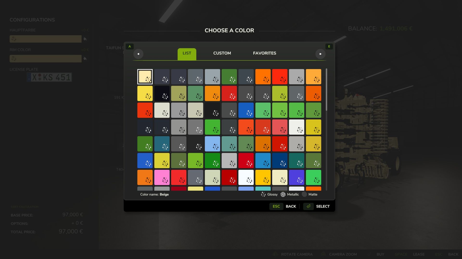 – Felgenauswahl (inkl. Radnaben) aus über 150 Original-Herstellerfarben.
