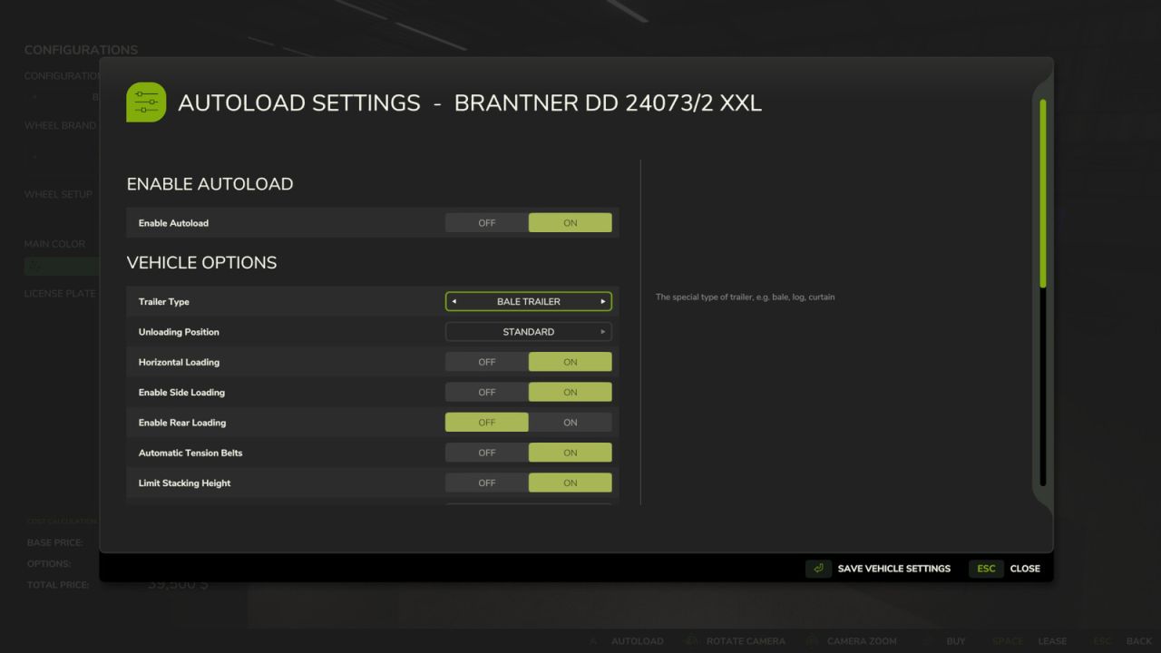 Automatische Beladung von Anhängern. Diese Modifikation betrifft automatisch die Anhänger des Basisspiels und wird auf alle neuen und bereits vorhandenen Anhänger auf Ihrem Hof angewendet. Unterstützte Anhänger können beim Kauf im Shop über eine Benutzeroberfläche konfiguriert werden. Eine vollständige Konfigurationsanleitung finden Sie in der beigefügten Readme-Datei.