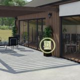 Ein luxuriöses, weißes Haus im modernistischen Stil. Es zeichnet sich durch eine schlichte Struktur, große Glasflächen und eine helle, freundliche Ästhetik aus. Das Design vereint moderne Architektur mit einem großzügigen Raumgefühl und exklusivem Komfort.